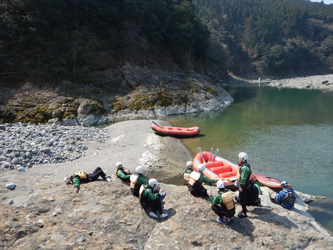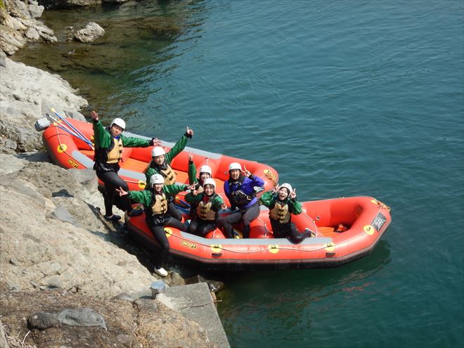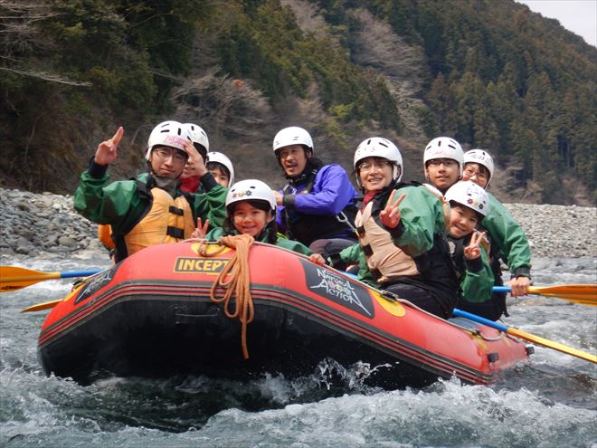 富士川まで無事着き、ラフティングを楽しんだファミリー